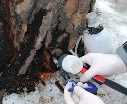 Служба СЭС по уничтожению короеда-типографа в Снежинске.